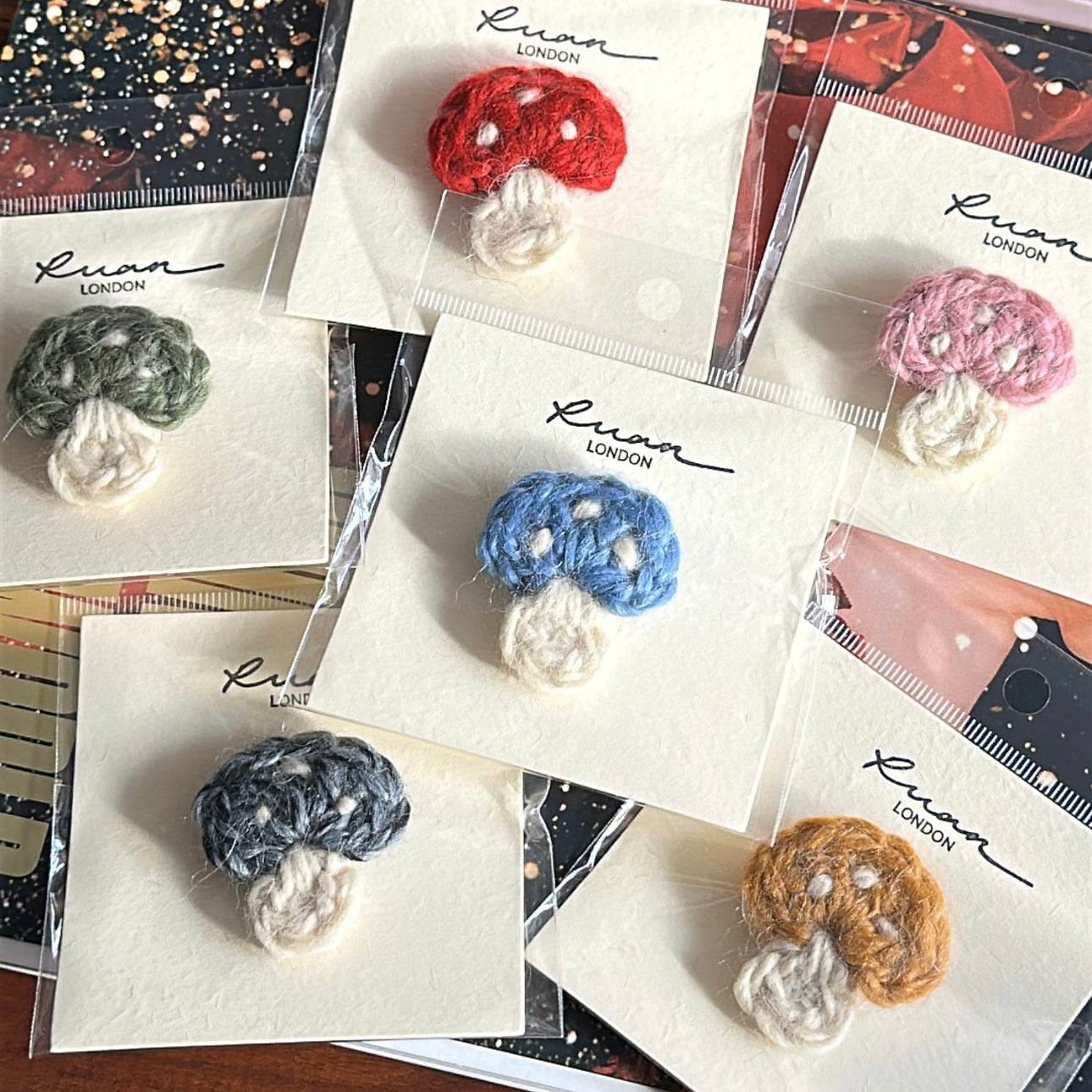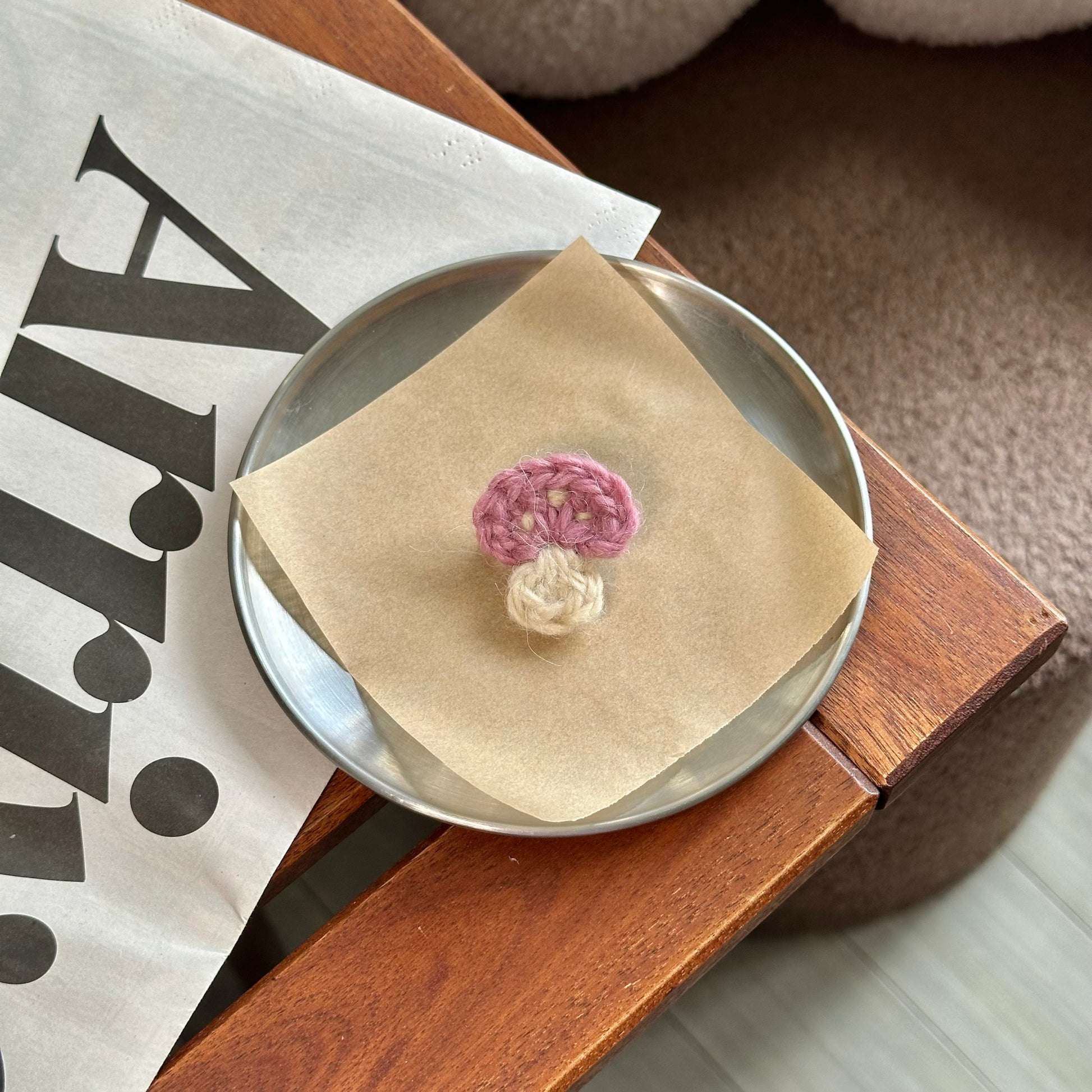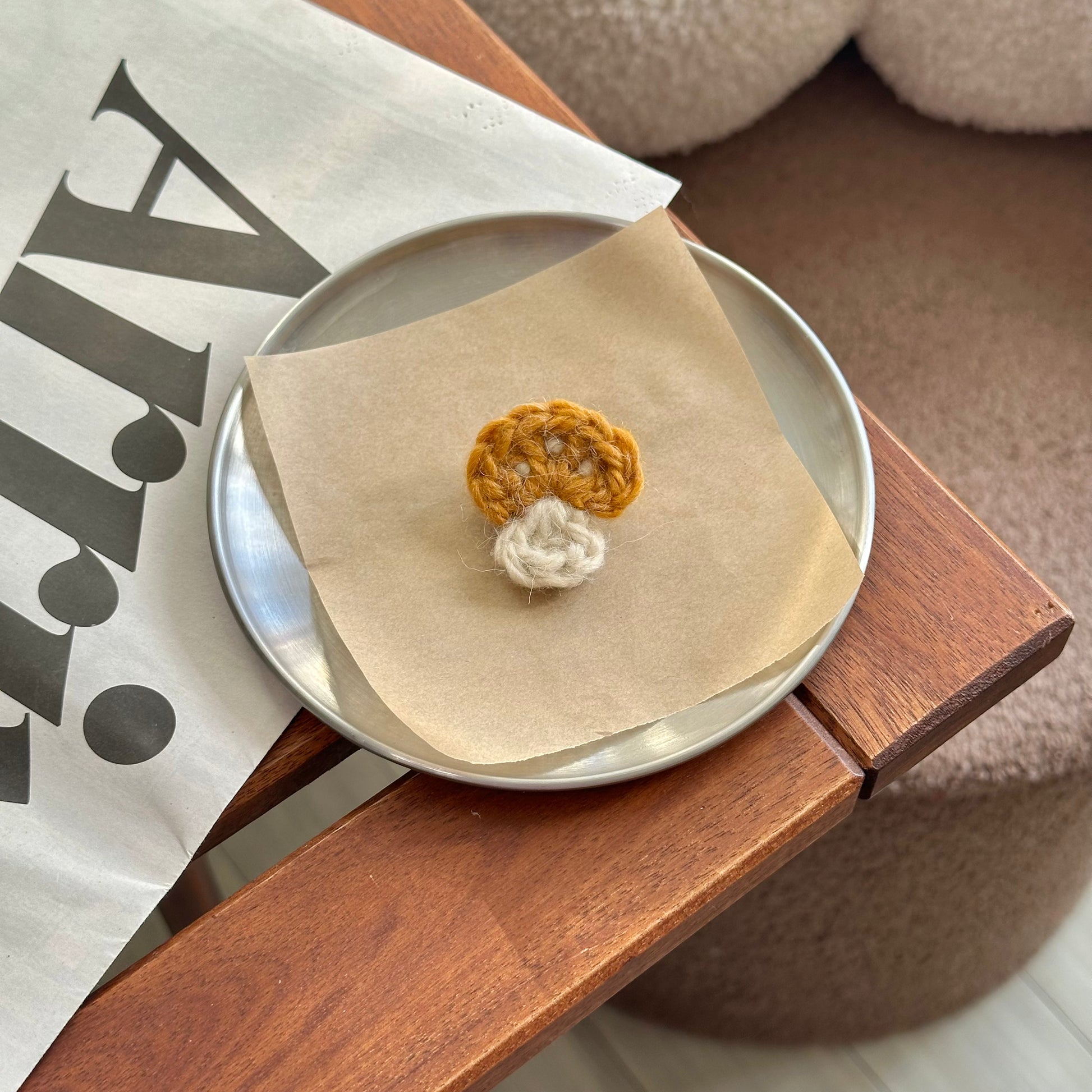 This charming handmade crochet mushroom brooch brings woodland magic to your everyday style. Small but mighty, it's designed to add a whimsical touch wherever you choose to place it.